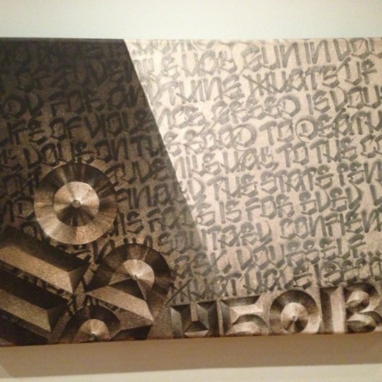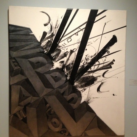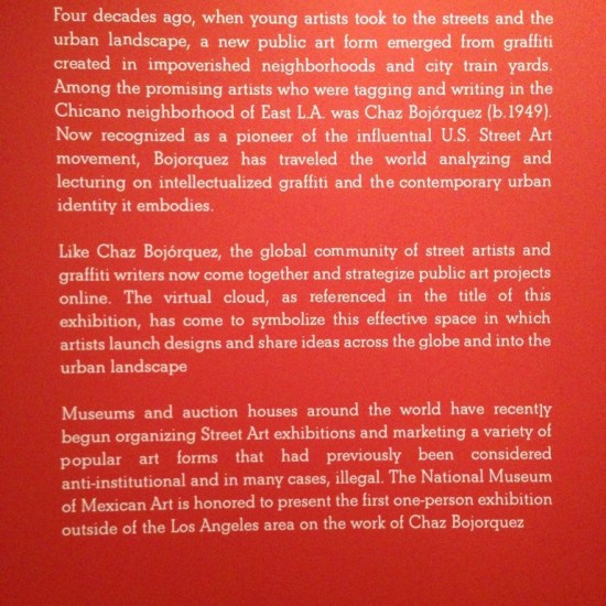 If you have not seen Chaz Bojórquez at the National Museum of Mexican Art, you are missing a wonderful exhibition. Chaz Bojorquez has been acknowledged as the ‘O. G. Godfather’ of East Los Angeles “cholo” style graffiti for close to 40 years, tagging since 1969. His work has been exhibited in Mexico, Spain, Italy, Germany, Japan, Taiwan, Hawaii and New York in more than 135 art galleries and 48 museums. His work is collected by many private collectors and museums, including the Smithsonian Institute in Washington D.C., the Los Angeles County Museum of Art (LACMA) and the Museum of Contemporary Art (MOCA), Los Angeles.