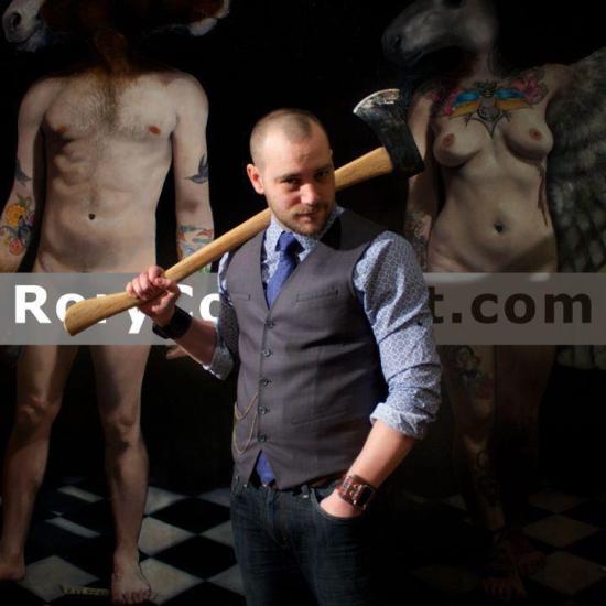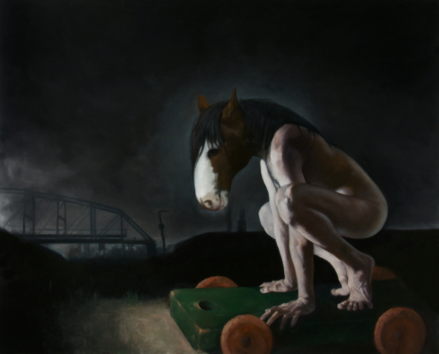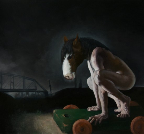 Rory Coyne is a well rounded and talented Chicago realist painter.  Not only he has control and mastery of technique but he also delivers captivating metaphors that engage the viewer into a conversation with his/her own identity. Over the years, I have enjoyed his evolving half human, half animal compositions. His portrayal to our accepted or denied “otherness” is embodied in the corporal mutation of the flesh. It is in this mythical struggle of dream and reality that one comes face to face with a great artist and human being.   Do not miss his work at “From Motion to Stillness” exhibition in the Zhou B Art Center (Opening: Feb 15, 2013).