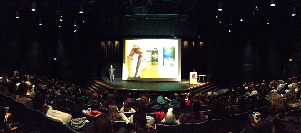 For the last 17 years, the college where I teach, (South Suburban College) has organized a High School Art Festival for the local kids surrounding our college. Every year, we bring a speaker to come and inspire the students. We have had artists such as Connie Noyes, Richard Hunt, Ed Pasche, Tom Torluemke and many others share their life’s passion on this stage. It is a really cool experience for the 400+ inspiring young artists who make their way into our campus. Not only they get to participate in a month-long art exhibit but they also enjoy a day of art related activities we organize for them.