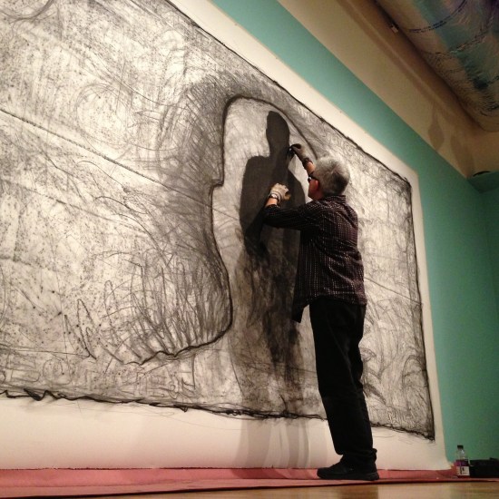 There is something thrilling about approaching a piece of paper bigger than oneself. For the last few years I have challenged myself by making charcoal drawings in the style of an art performance. I approach the drawing process with a slight idea of what I want and then let the moment and the place dictate the final outcome. I have done this with live audiences as well and I enjoy the thrill of finishing with something meaningful at the end.