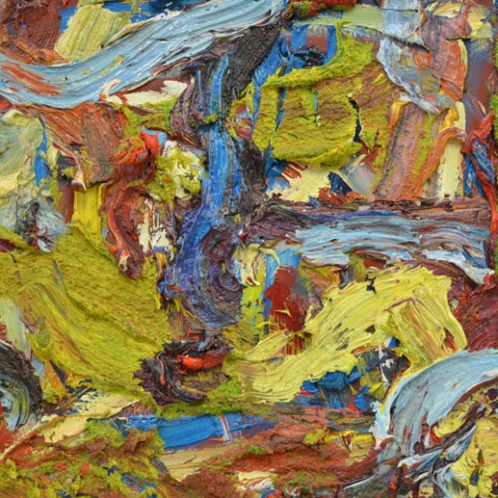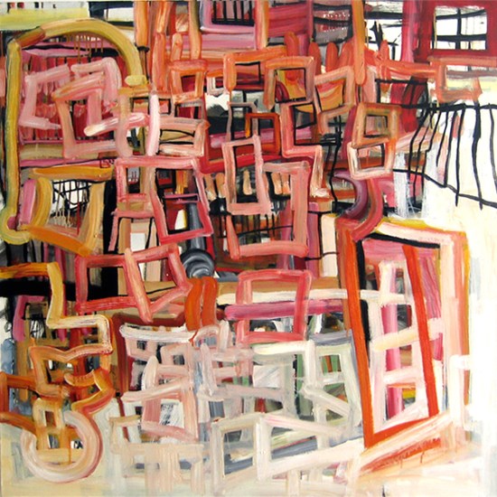 Each individual artist is deeply engaged with the physicality of paint. Duk Ju’s marks often operate as dense scaffolding that flesh out architectural spaces and forms that can be at times both interior and exterior. With saturated colors, John creates images with persisting or exaggerated colors masking a disconcerting artificiality. Entrancing layer upon layer of viscous and grainy pigments distinguish the surface of Darrell’s canvases, which present an emotive record of steady contemplation.