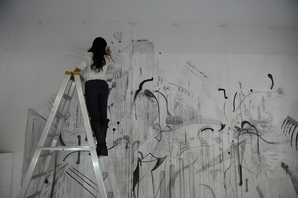 Sijia’s works are an explosion of momentary emotions as they recollect the energy of the environment in which they are created. Drawing from her life experiences, the works in the exhibition project a visually recognizable sensitivity that distinguishes the spontaneous art-markings of Sijia Chen. They evoke a newly crafted reality that appears to embrace an urban landscape. The speed of time and change come to a seemingly stand still, only for a moment, in the dynamic black and white works that surround the exhibition space.