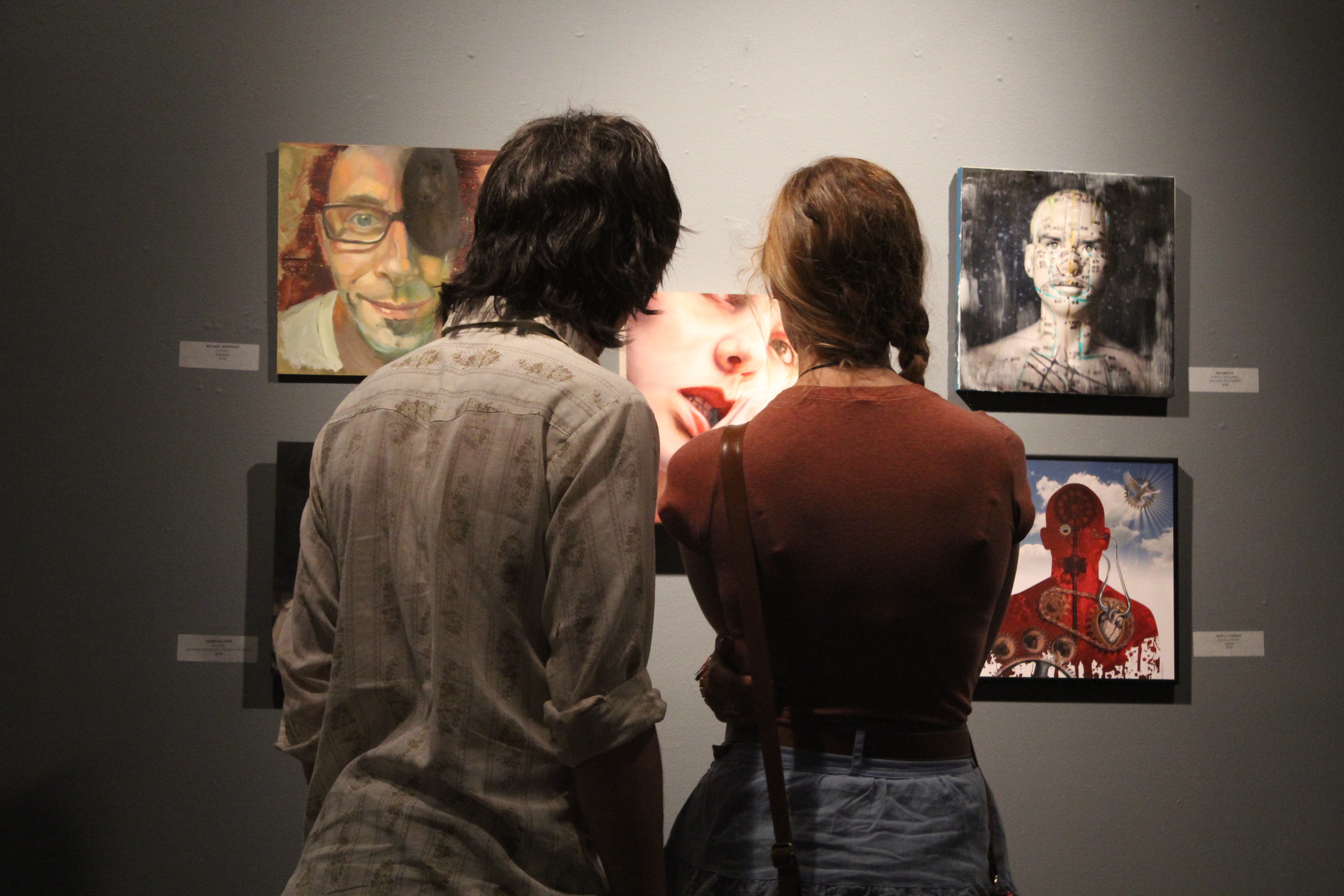 The 9th Annual National Self Portrait Exhibition opening at 33 Contemporary Gallery gathered artists, art lovers, enthusiasts and the public at large on Friday, July 19th. The crowd was lively and enthusiastic in one of the hottest Summer days in Chicago this year. Despite the heat, the exhibition celebrated nine years of national contemporary self-portraiture. Unlike the previous years, the artists who submitted works for the exhibition were asked to work within the confines of 12″ all around. Artists were challenged to work in a small scale and the public was delighted to view these great works at close proximity.