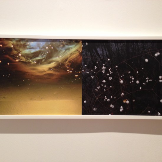 In the other hand, Dorfsman presents us with a duality of existence by juxtaposing the macro and the micro within a single work. Each work delineates an understanding of two similar universes within one reality. That which we understand as being here on planet earth and that which is as perceived as being outside of us, the universe. Nevertheless, both the in and out are all part of the same. It is based on our own perception of where we are that such implications are made.