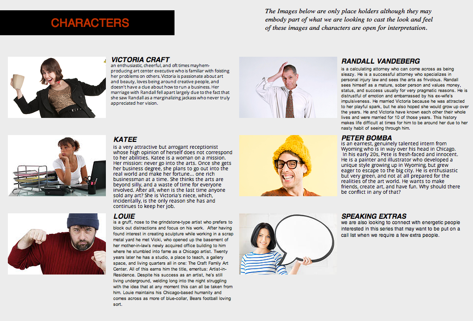 Martin: That tough – Victoria is the lead but she is stereotypical is some sense, I think the hard part will not be the actors but the artwork and artists I work with behind the scenes. I don’t think most artists hear “I want to put your art in a comedy” and immediately say “Oh that would be great” some do, and they should reach out to me, but for the most part it looks like a hard sell from here.