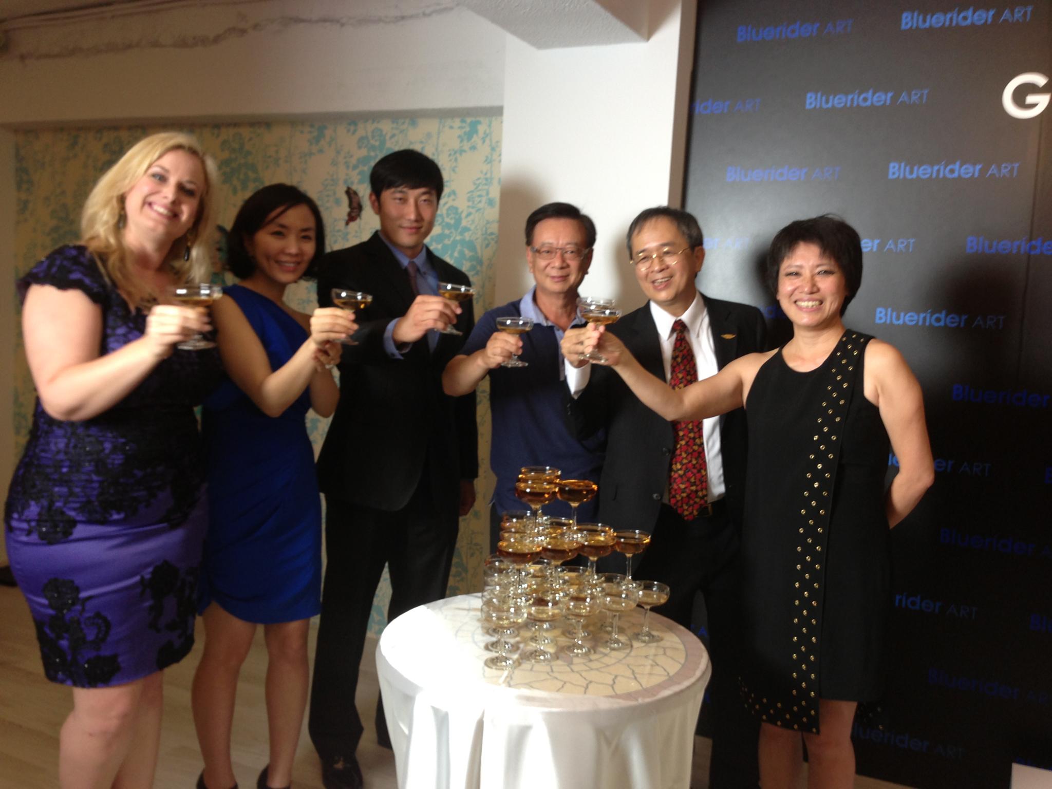 During the weekend of September 6 and 7, the Zhou B Art Center in Chicago celebrated a cultural alliance with Bluerider Art Gallery in Taipei, Taiwan. This art alliance will promote the exchange of art and ideas among the east and the west and will provide opportunities for cultural advancement. The partnership was celebrated during the opening of Zhou B Art Center’s artist InJung Oh on September 7th at Bluerider Art in Taipei. Executive Director Michael Zhou and Director of Exhibitions Sergio Gomez were in Taipei for the opening ceremonies.
