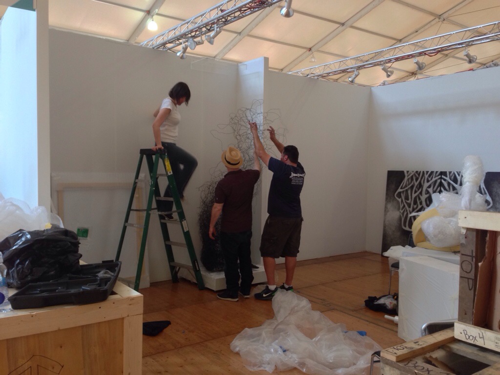 Today was a very busy day spending it setting up the booth for 33 Contemporary Gallery at Spectrum/ArtSpot Miami International Art Fair. We occupy a nicely spacious 700 sf space at the entrance of the fair. I must say that besides some last minute challenges, we pulled it trough and we got it done thanks to the artists and gallery staff helping out.