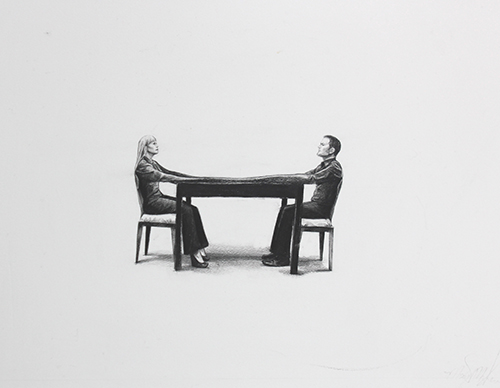 MM: I’ve been painting in oils for the last 20 years. Last year, I started doing large scale graphite drawings on paper for my show at Art Basel in Miami. Working in drawing mediums and on paper as the finished product was completely new to me. I hated it but then it pushed me to reach deeper. The newness of the materials alone was an inspiration to work uniquely but still be able to say something worth the viewer’s time and interest. o I’ve just completed an entirely new body of work for my upcoming show at AdventureLand Gallery. I wanted the show to be chapters in a story. In the past I’ve painted a lot about interpersonal relationships. Our culture spends a lot of time and effort displaying how to fall in lust, fall in love, and start relationships. It glorifies first kisses and touches but ignores true intimacy. When I got married in 2013 I asked my guests to advise how to stay happily married. The solo show, Advice, is a visual manifestation of the written comments I received. Each image depicts the concept the well-wisher was advising. From communication to what to do when leaving the house, each image depicts a part of what true intimacy looks like.