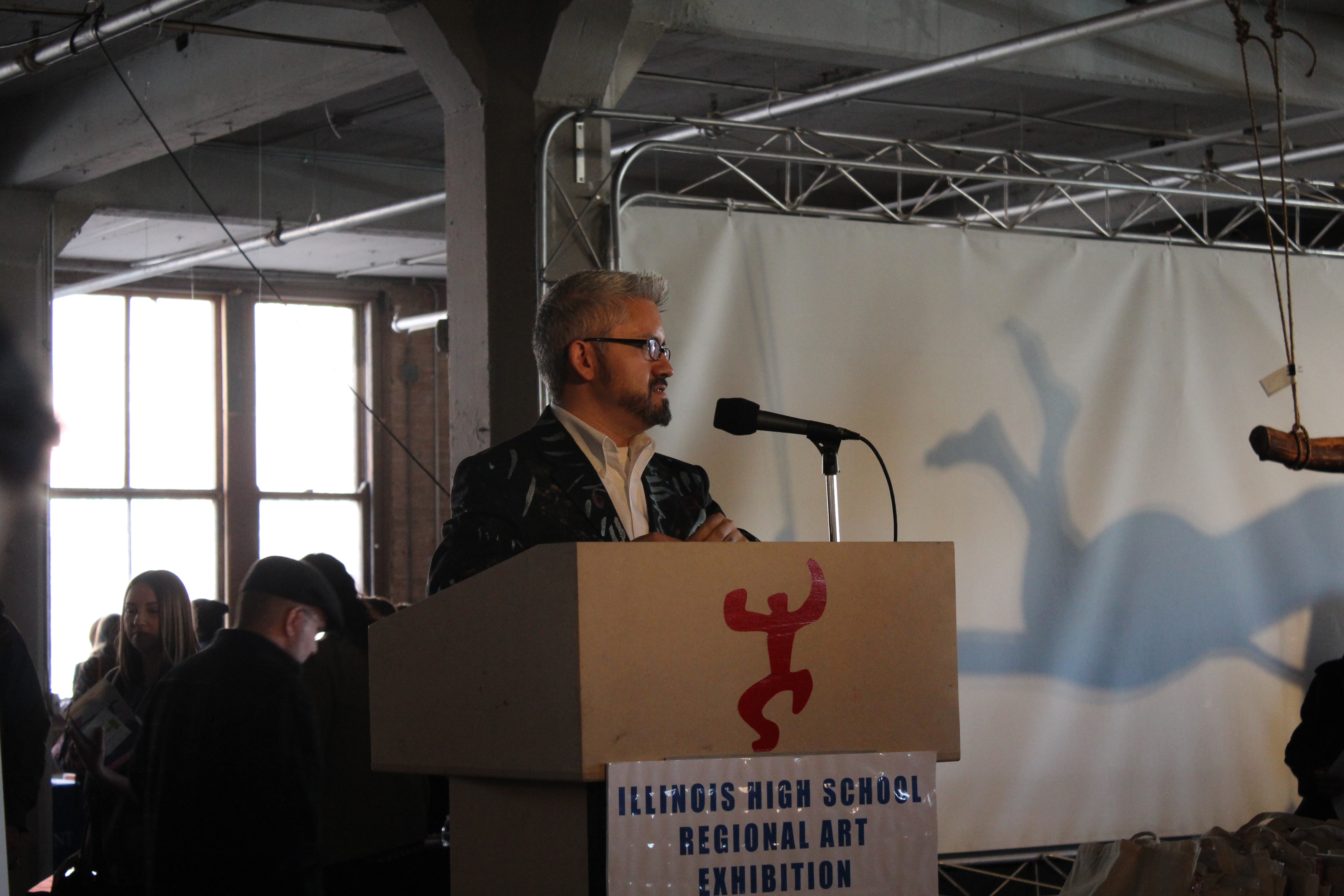 One morning of Spring 2013, as I walked out my gallery at the Zhou B Art Center, I ran into artist and High School art teacher John Zilewics. He and some of his friends were walking into the art center. It was one of those awkward moments that almost seemed to have been in our destiny. John is an artist who has participated in some of my curated exhibitions. When I saw him, I thought he was just visiting with friends. However, we started talking and right there in the hallway, John gave me in a few seconds the grand vision for a massive high school art exhibit like Chicago had never seen before. Not only he and his buddies seemed serious about the idea but I could tell in their eyes they believed in this thing wholeheartedly. We talked for a while and by the time I left that brief conversation, there was a sense that maybe this was a good idea to pursue.