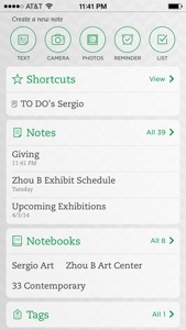 You know all those sticky notes floating around your desk? Now you can scan them with Evernote and keep them organize. How about those business cards you exchange in openings?  Now you can scan them and make a category for Contacts to keep them around. Evernote will scan the business card and pull the text from it. Very cool feature.  There are many other apps that do that but Evernote keeps the info within itself to make it easier to manage.  You can aslo add voice recordings to any note and you can use the Presentation mode to present them in a meeting.