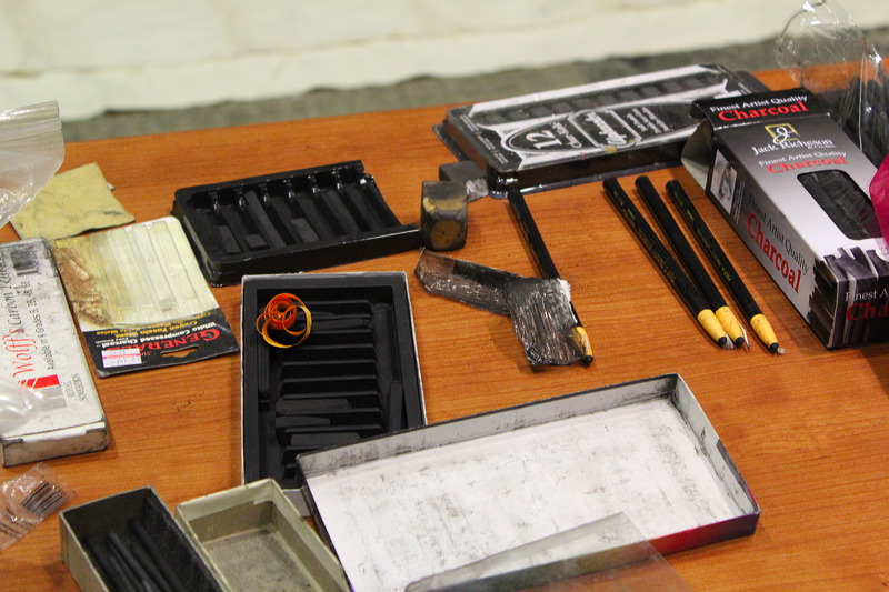 Charcoals and erasers of different types and sizes were the materials of choice.