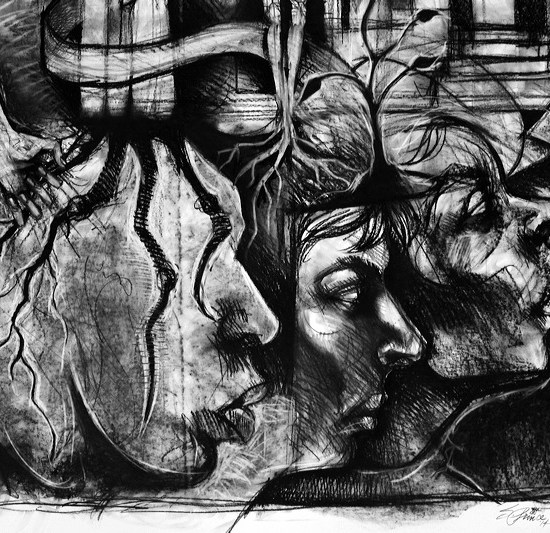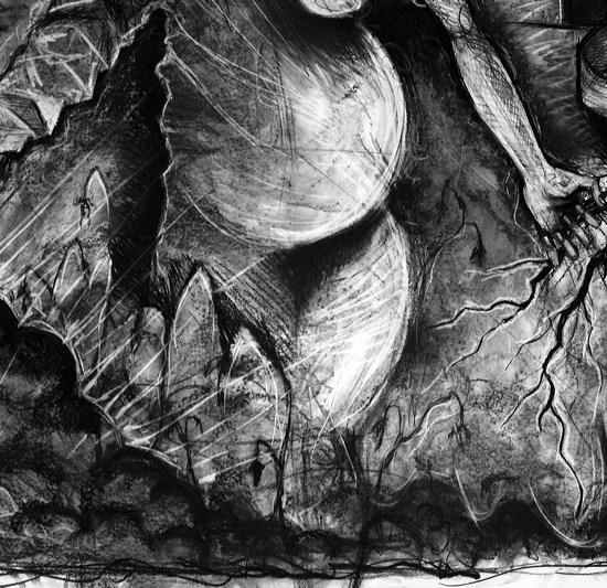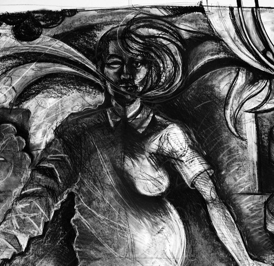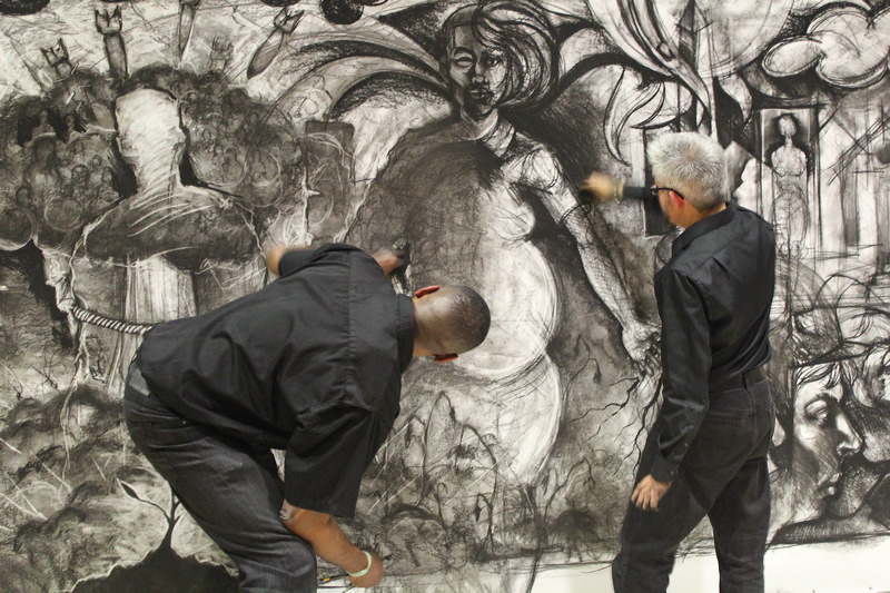 Drawing by Sergio Gomez and Steve Prince, 8’x13′, charcoal on paper.