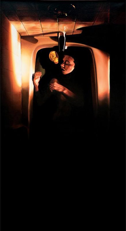 She introduces us to a world in which not many will dare to explore; where hope and balance seem distant. The more I immersed myself in Moore’s work, the more I realized how the artist allows her characters to freely demonstrate their inner feelings in their outward behavior even when the consequences may be painful or fatal. Moore’s work portrays daily struggles, traumas, psychological distress, revenge and dark secrets. It invites the viewer to challenge the status of her/his inner thoughts and question one’s secret deep desires. In Birth and Affliction (2012), the artist challenges the viewer’s notion of going above an beyond what is right to find a false sense of temporary peace at all cost.