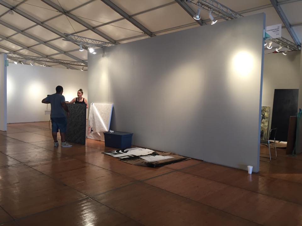 In my previous posts (Part 1 and Part 2), I have been describing the process preparing for the fair. On this one, I will start the process of being in the fair. On the first day of setup, everything went smooth. The work arrived early in the morning from Chicago. Everyhing was safe and sound. That is one of the advantages of hiring a reliable shipping company. The day of setup can be a long day for exhibitors. Getting badges, opening boxes, unpacking, laying things out, hanging, meeting other gallerists and artists nearby, etc.