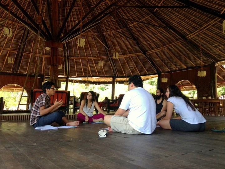 And so it happened, it was a way to free the artists from their ideas, fears and previous concerns, an exercise of artistic release was accompanied by a hike to a nearby waterfall, where they could hang their containers from one of the trees in the surrounding area. Now we were ready to start meditation, we emptied our minds, it was a matter of time before new creative ideas began to flourish and before the barriers that often prevent us from communicating with each other in everyday life to disappear.