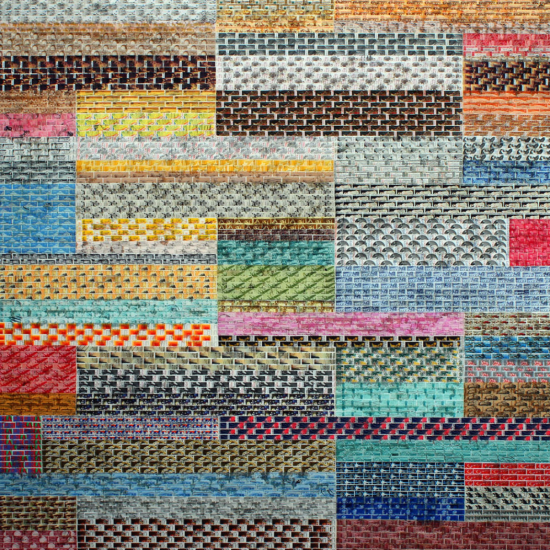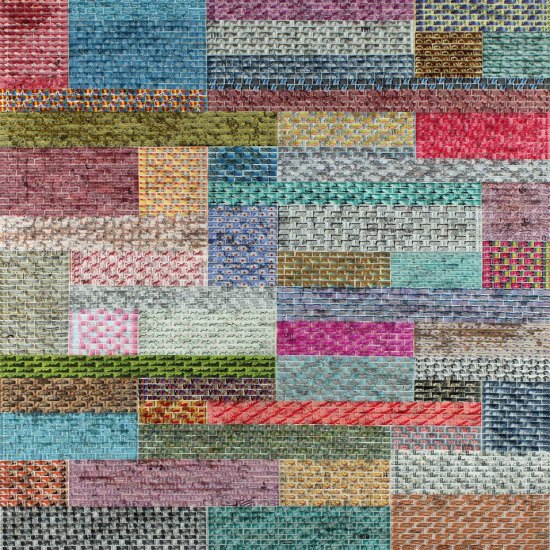 Jordan Scott’s color selections and pattern choices often resemble magnified sections of beautiful textile surfaces. It is the aggregate of millions of ink dots in the printing process of each stamp that creates a visually rich and colorful surface. Only an artist with a rigorous discipline to carefully orchestrate an individual piece can visualize and construct an organized whole. Discipline in this case also provides the artist with a unique understanding of time. These works cannot materialize themselves in a manner of a few hours. Instead, they are the product of weeks and months in the making. For the artist, time inside the studio may appear to move at a slower speed than outside of it just by the mere nature of the slow process of taking each stamp and placing it in its respective position. Yet, the end result is a frozen glimpse of a universe in rapid motion. Consequently, we experience a complex, layered world though the magnifying glass of the artist’s own point of reference within the universe we inhabit.
