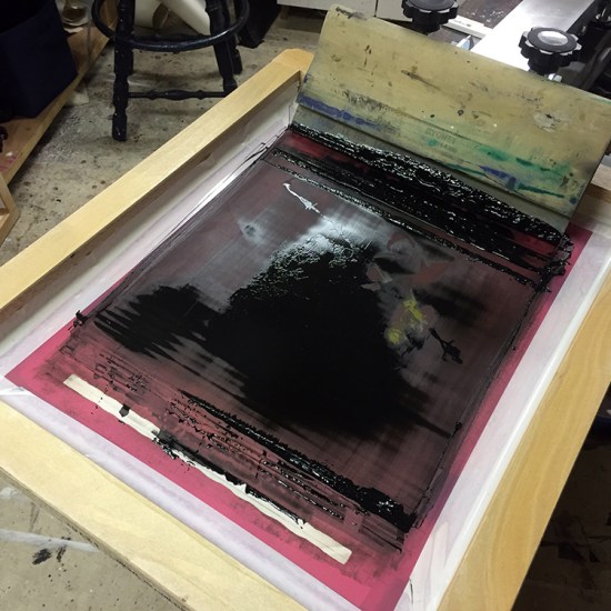 Medium: Two-color silkscreen process with hand applied charcoal