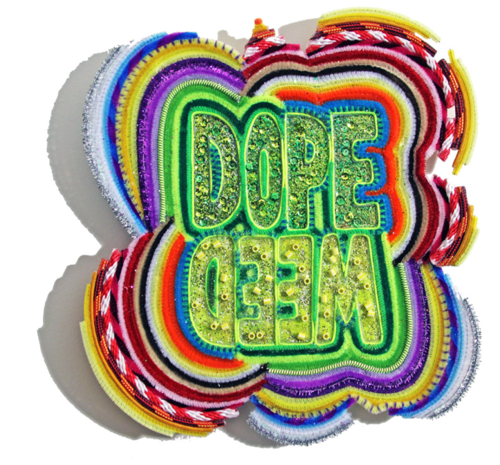February 5, 2017February 5, 2017Sergio Gomez screen-shot-2017-02-05-at-9-36-23-pm DopeWeed © 2016 // 14″ x 12″ Mixed media on canvas * Paracord, rope, satin string, pipe cleaners, glitter, perler beads, acrylic paint, pom poms on canvas