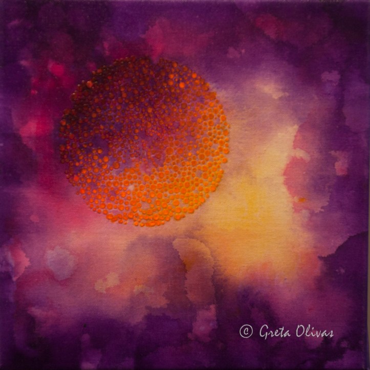 I believe my paintings are stories, energy or emotions that come through to the canvas. Some may resemble celestial bodies, but to me, they are a bigger understanding of the universe & our place within it. When someone states they felt a painting, or it provokes emotion, I know I successfully transmitted the energy. I tell people that I don’t know if my personal growth helped me with my art or if my art helped me with my personal growth. I think the answer is yes to both!
