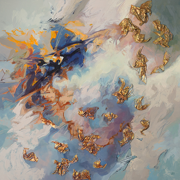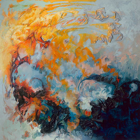 Thyra: To create a new series, I usually have the series name, a color palette, and perhaps even some names for various pieces pre planned. What unifies this series is the energy, movement and dimension. As development of a planned series for this show began, the gallery requested a significant number of large pieces (30” x 40” and larger). With a fixed deadline in place, I needed to adjust my initial plan to include new pieces blended with existing pieces.