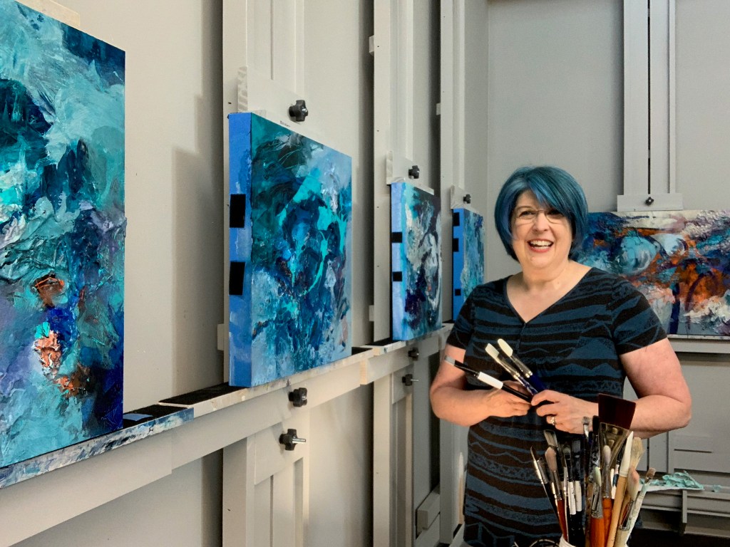 Thyra: It was very helpful that the gallery provided a floor plan so I was able to curate the show in advance. Knowing the order and placement of art, allowed me to create and fill in ‘gaps’ with newer pieces to enhance the continuity. The show has an engaging range of sizes from 12” x 12” all the way up to 48” x 60”. The gallery space is large allowing plenty of space for the eye to rest between pieces.